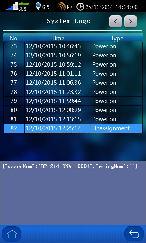 Type: The event type currently including, Power on, Internet Upload, SMS Upload, Mark, Un-assignment, Pigeon Back, Delete Race ,Time Verify, Modify Params (Change communication settings) and more.