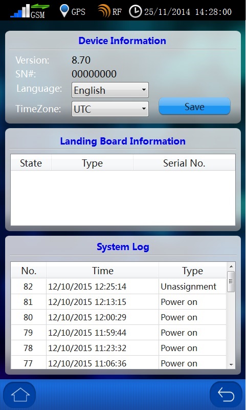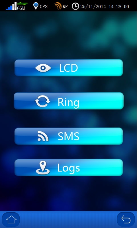 When you configure all the communication parameter necessary and restart device, please see your main menu bar of all communication icons, such as GSM power bar, GORS arrows, and AGPS kick in. You can also send a test SMS from the System Test function.