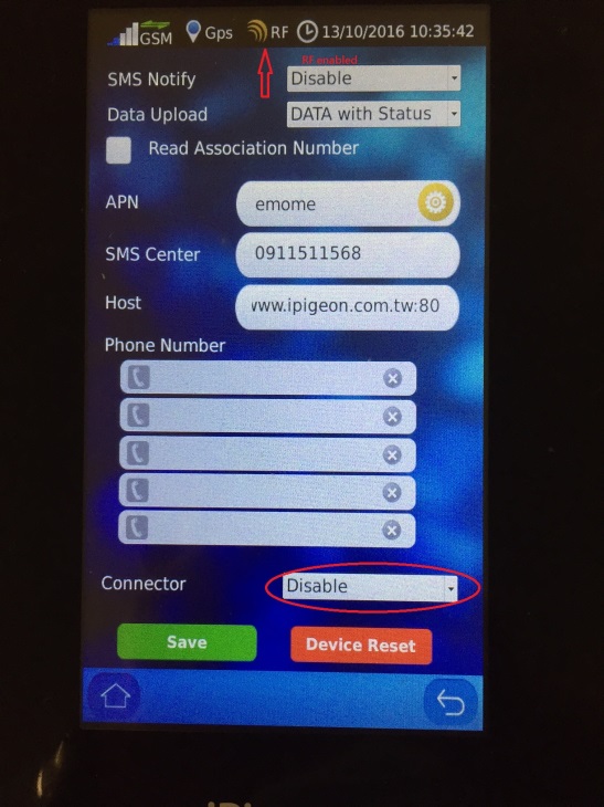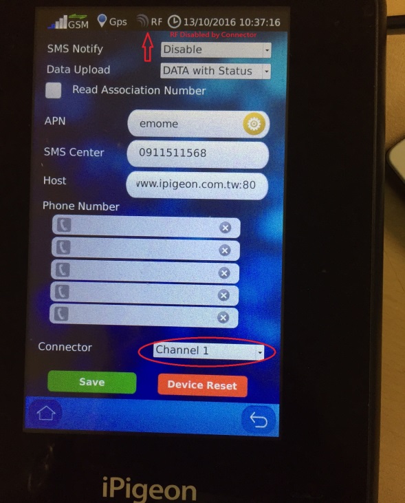 All powerful iPigeon communication capability is configured in this function. Please read it carefully. There are Save and Device Reset at bottom. For all the communication configured parameters you need to save and reset the clock to activate.