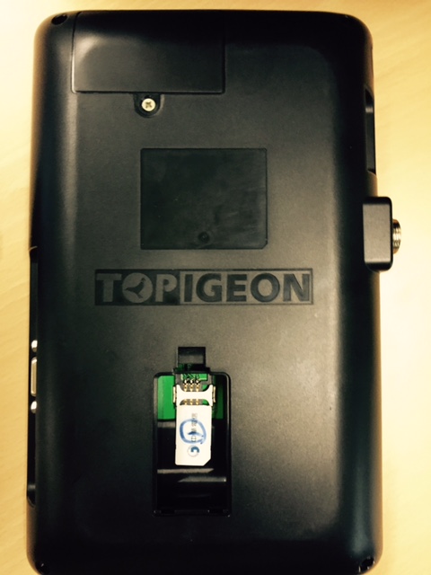 Open the SIM card slot on the back of iPigeon. Get your SIM card from the operator in standard size and insert the SIM card into the SIM card slot on the back of iPigeon. Please note the SIM card direction by following the slot picture and align with the edge.