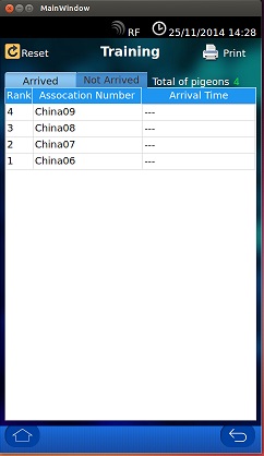 The training data is much more straightforward for arrival and non-arrival information. All your birds which are not marked for the races will be in the Training Data. The fancier can also print out the training results to keep the training record by clicking on the top right side print button. The printer can be the local printer by connecting directly to the club master system through printer parallel port.